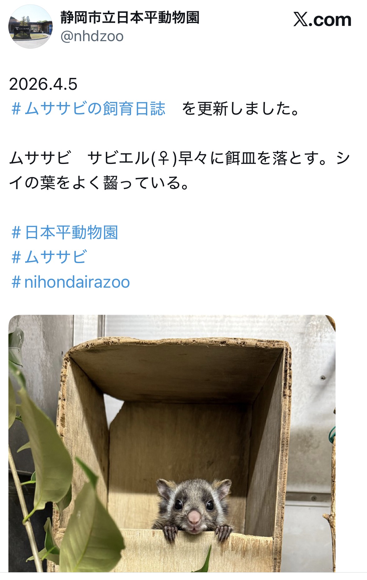| … | 90無念Nameとしあき26/04/10(金)16:51:28No.1399849301そうだねx3 1775807488199.jpg-(819823 B) もし叶うなら次のみんみにも期待したいですやんか@とべ動物園 |