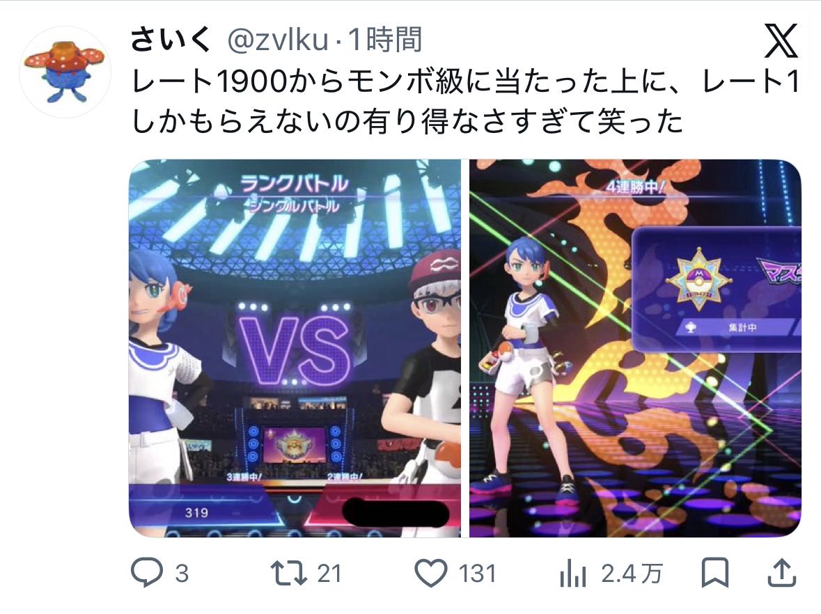 | … | 205無念Nameとしあき26/04/10(金)15:32:13No.1399837135+マスボがレート1800くらいらしいからまともに構築してないと勝つの厳しそうだな |