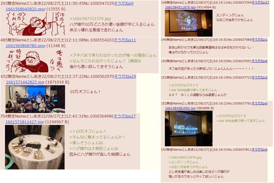 | … | 38無念Nameとしあき26/04/10(金)21:59:14 ID:whdCwimcNo.1399924166+>>(架空の荒らしに糖尿病と禿は寝てても治らないことを教えてあげるという異常なコンセプトの)オフ会の人たち |