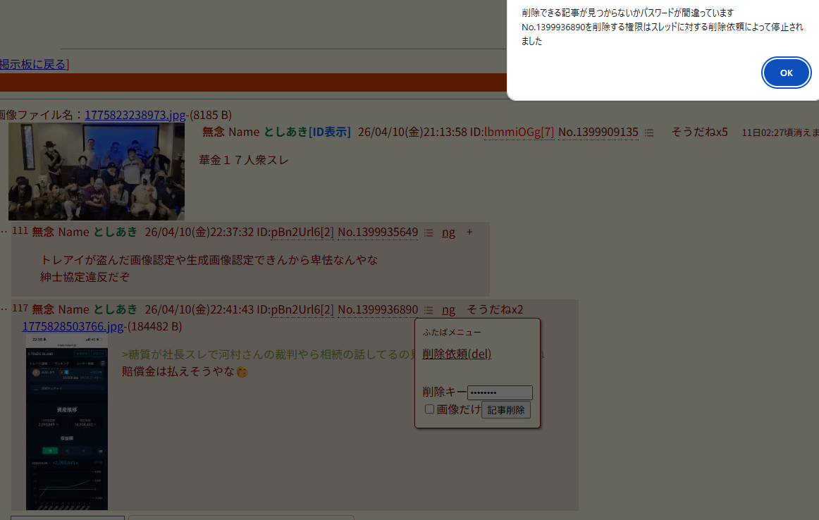 | … | 186無念Nameとしあき26/04/10(金)23:49:42 ID:RPUEWi6gNo.1399954662+ 1775832582383.jpg-(1480409 B) >乱立することもあるよねそれ荒らし行為だからね |