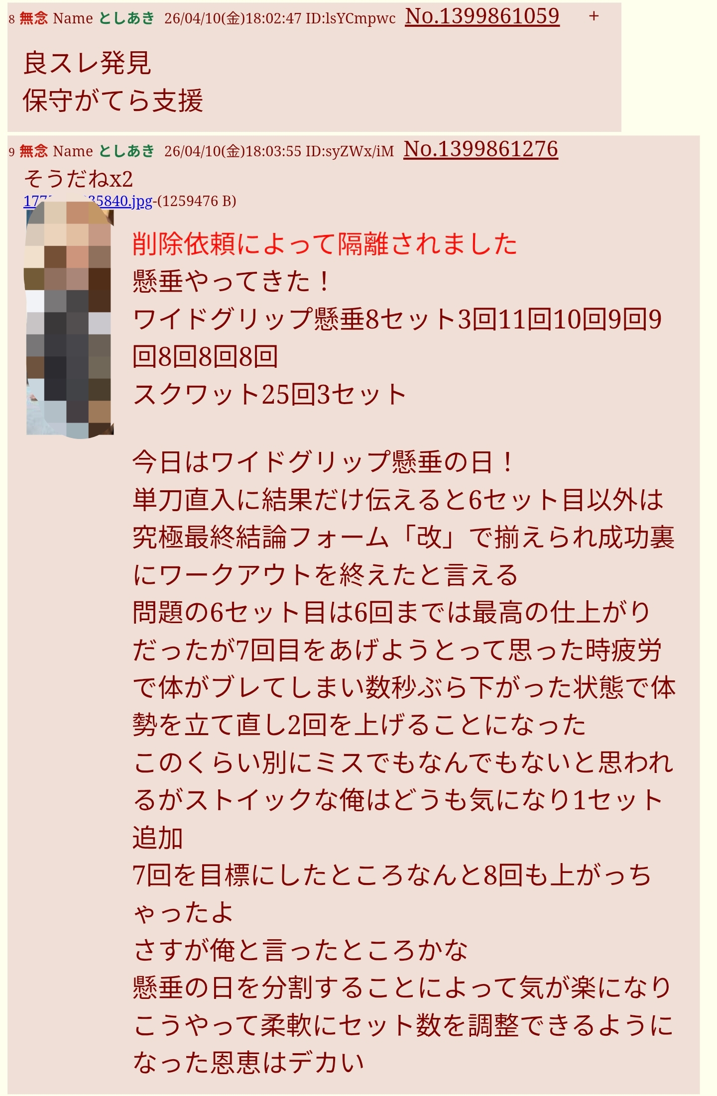 | … | 18無念Nameとしあき26/04/10(金)22:11:43No.1399928029そうだねx4懸垂スレで筋トレあきに異常なテンションで動画せがんでてキモ過ぎた |