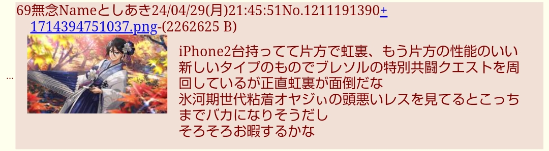 | … | 143無念Nameとしあき26/04/10(金)22:50:03No.1399939308+ 1775829003760.jpg-(1515255 B) 眠いから頭が回らんなー |