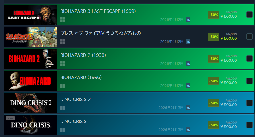 | … | 12無念Nameとしあき26/04/10(金)22:45:32No.1399937952+いきなりバイオOBをsteam販売しないかな |