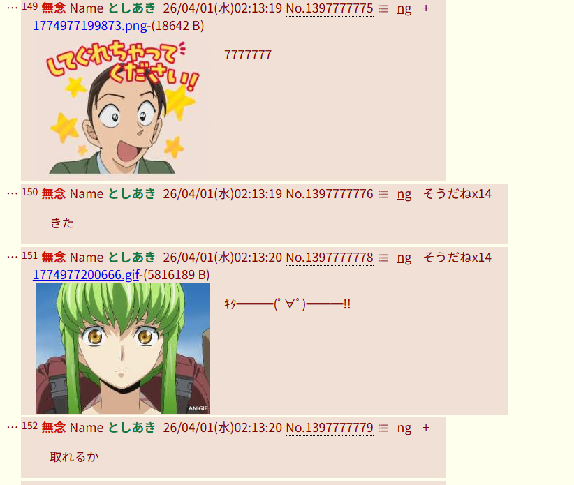 | … | 23無念Nameとしあき26/04/11(土)00:26:12No.1399962359+30分で5000レスくらい |