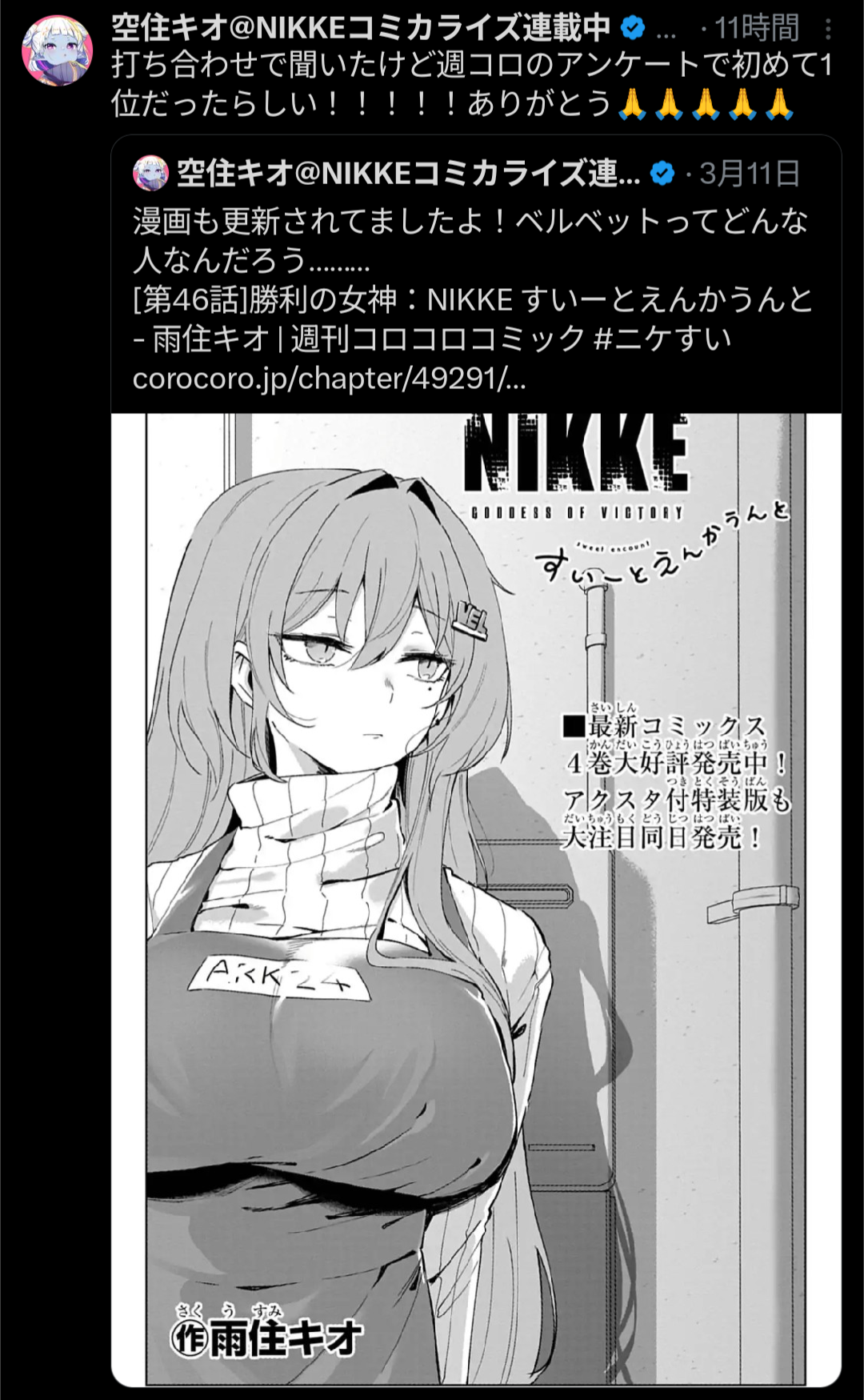 | … | 135無念Nameとしあき26/04/11(土)08:22:08No.1399994946+>週コロでおニケすい覇権の日も近いか |