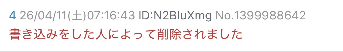 | … | 115無念Nameとしあき26/04/11(土)10:18:13No.1400011276+書き込みをした人によって削除されました |