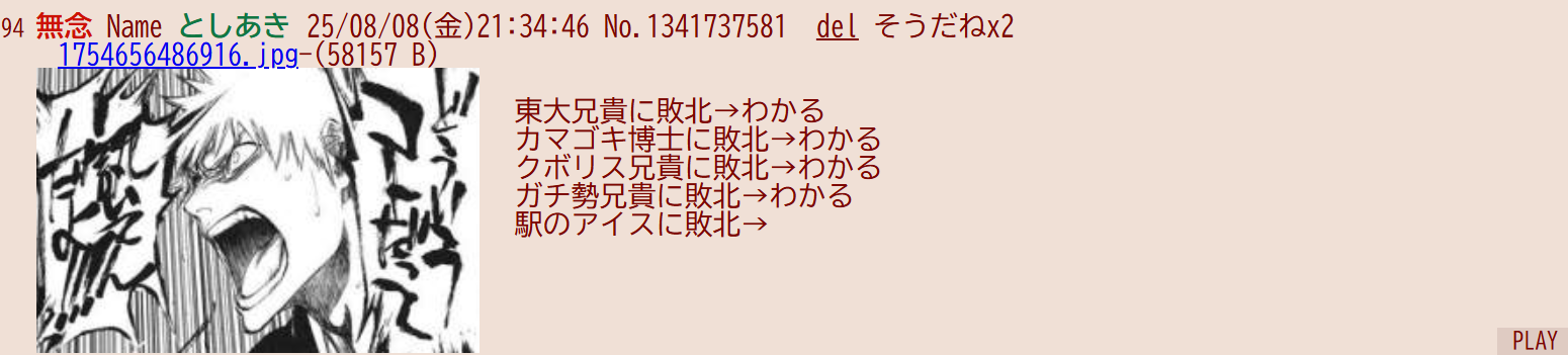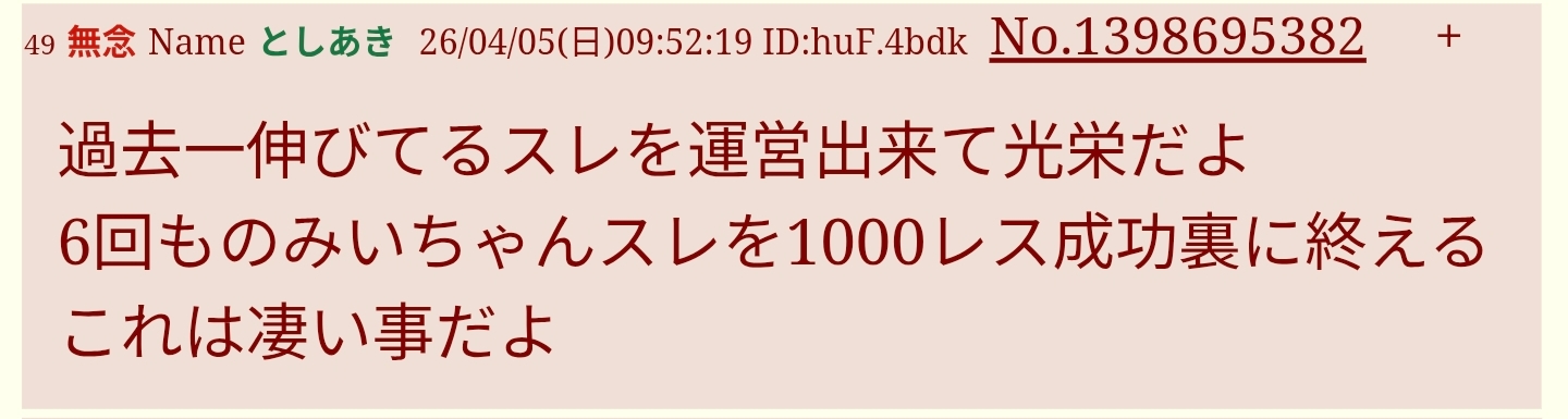| … | 103無念Nameとしあき26/04/11(土)09:47:06No.1400006841そうだねx3>>初カキコじゃないの? |