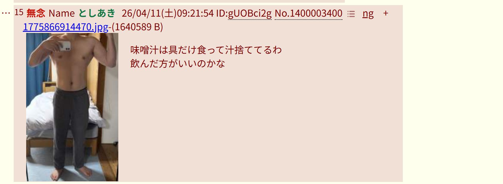 | … | 64無念Nameとしあき26/04/11(土)08:30:24No.1399995916そうだねx4 1775863824713.jpg-(35405 B) >おはよう |