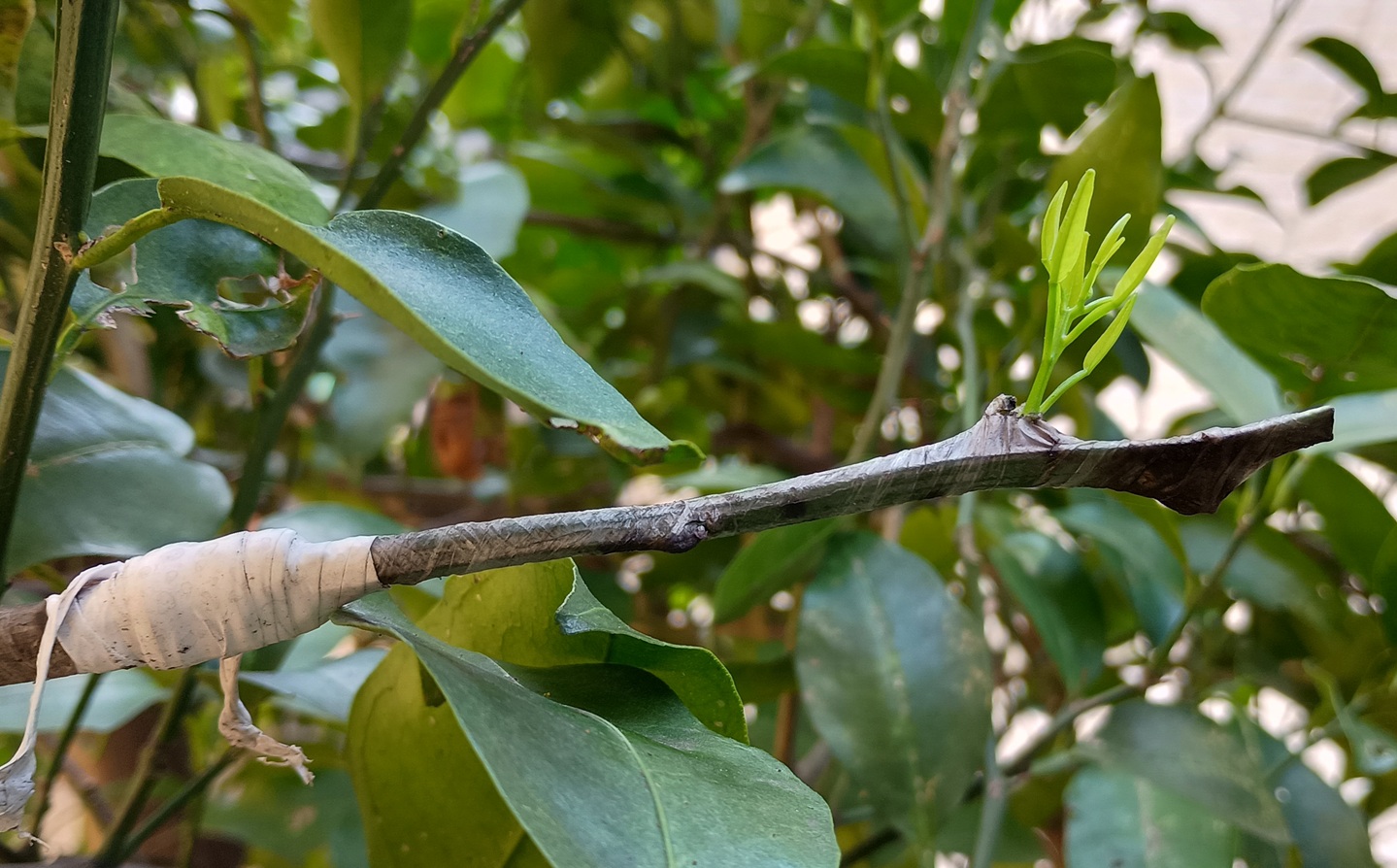 | … | 1無念Nameとしあき26/04/11(土)17:37:15No.1400096702そうだねx1 1775896635903.jpg-(379701 B) 去年失敗したと思って放置してた柚子に接いだジャバラから芽が出てた |