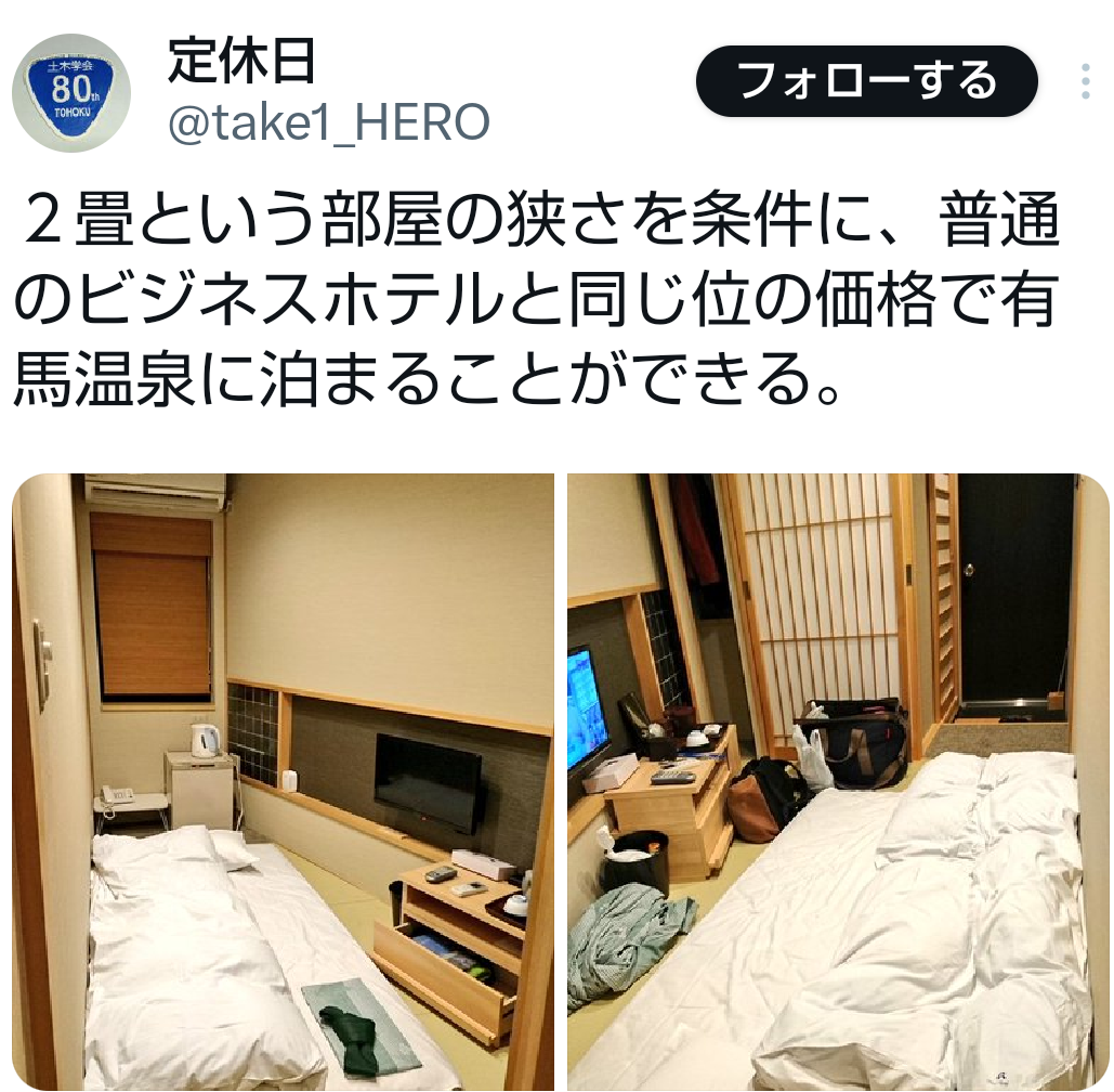 | … | 12無念Nameとしあき26/04/11(土)19:13:06No.1400120504そうだねx1411はいま流行りの旅行会社添乗員・バス乗務員専用宿泊室を転用した |