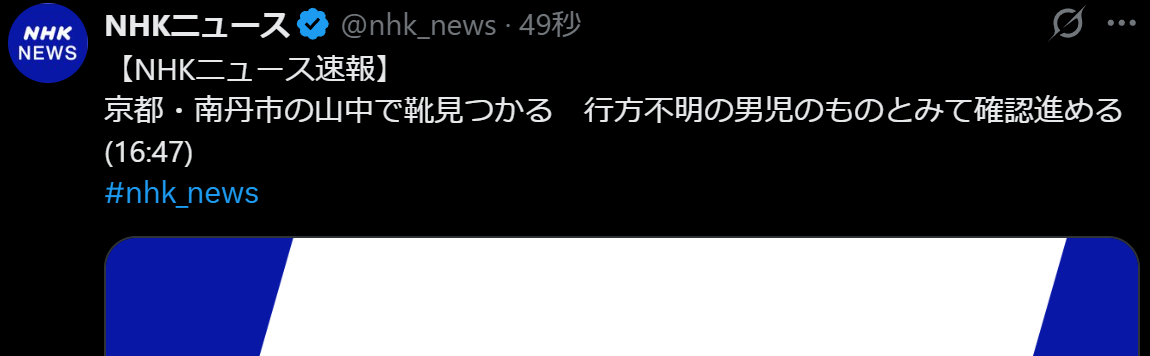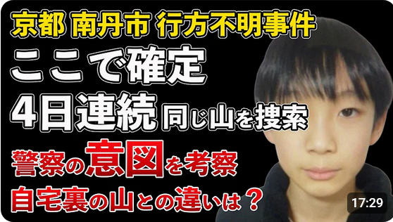 | … | 4無念Nameとしあき26/04/12(日)16:00:57No.1400349791+あすで行方不明から3週間…京都小6男児の捜索続く 4日連続で「シャベルで土を掘り起こす」などの作業 |