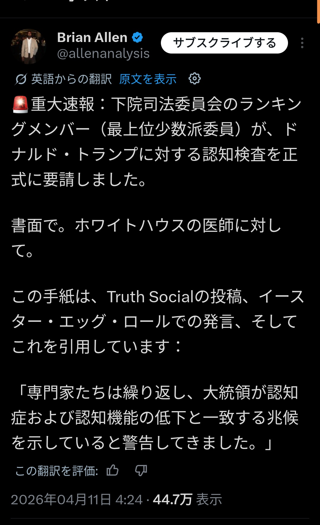 | … | 601無念Nameとしあき26/04/12(日)23:35:18No.1400478158+>というか共和党が無期限延長を既に表明してるよ |