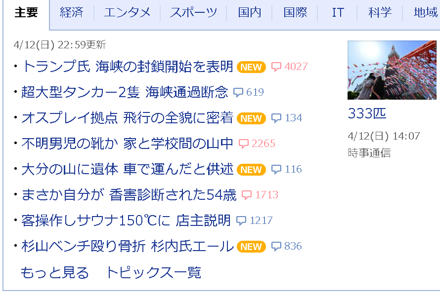 | … | 22無念Nameとしあき26/04/13(月)06:18:38No.1400512160そうだねx2 1776028718401.png-(93807 B) ヤフーの悪意を感じる |