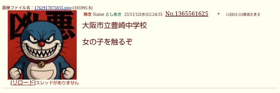 | … | 143無念Nameとしあき26/04/13(月)07:09:12No.1400514989+学校関係者は疑われてないのかな |