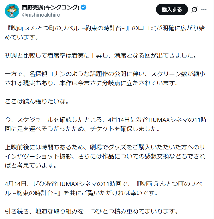 | … | 77無念Nameとしあき26/04/13(月)12:33:34No.1400552640+>>初週と比較して着席率は着実に上昇し、満席となる回が出てきました。 |