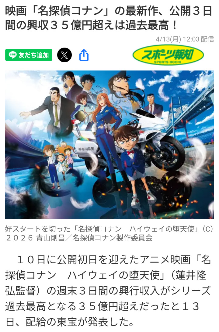 | … | 61無念Nameとしあき26/04/13(月)12:15:24No.1400548466+ 1776050124583.jpg-(237598 B) 速報コナン初動35億円突破! |