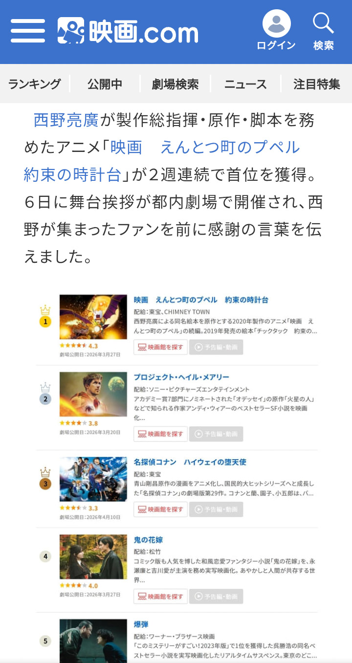 | … | 1無念Nameとしあき26/04/13(月)06:55:40No.1400514123+ 1776030940676.png-(130382 B) 『映画 えんとつ町のプペル ~約束の時計台~』の口コミが明確に広がり始めています。 |