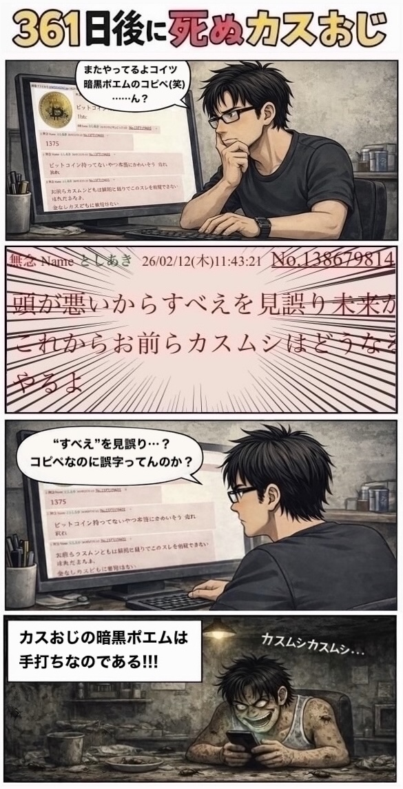 | … | 5無念Nameとしあき26/04/13(月)12:05:03No.1400546337+お前らカスムシは頭が悪いからビットコインに気付けず未来が読めない |