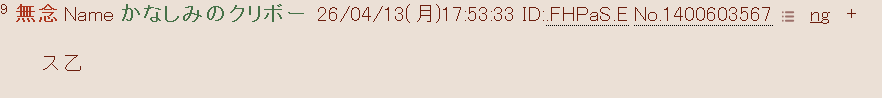 | … | 16無念Nameとしあき26/04/13(月)17:54:55No.1400603835そうだねx7>ID:.FHPaS.E |