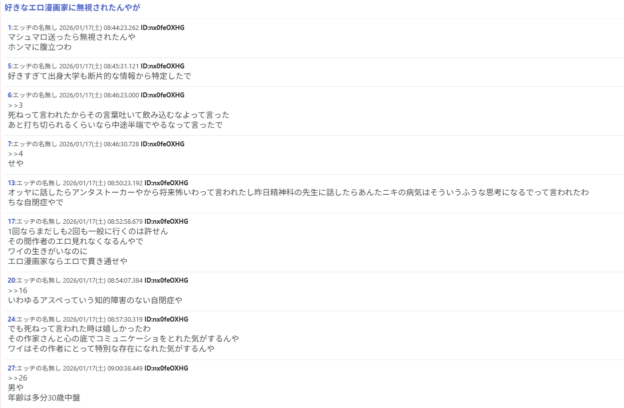 | … | 92無念Nameとしあき26/04/13(月)18:03:07No.1400605348そうだねx3>その上二次裏では励ましどころか罵倒や嘲笑の書き込みで溢れてるし… |