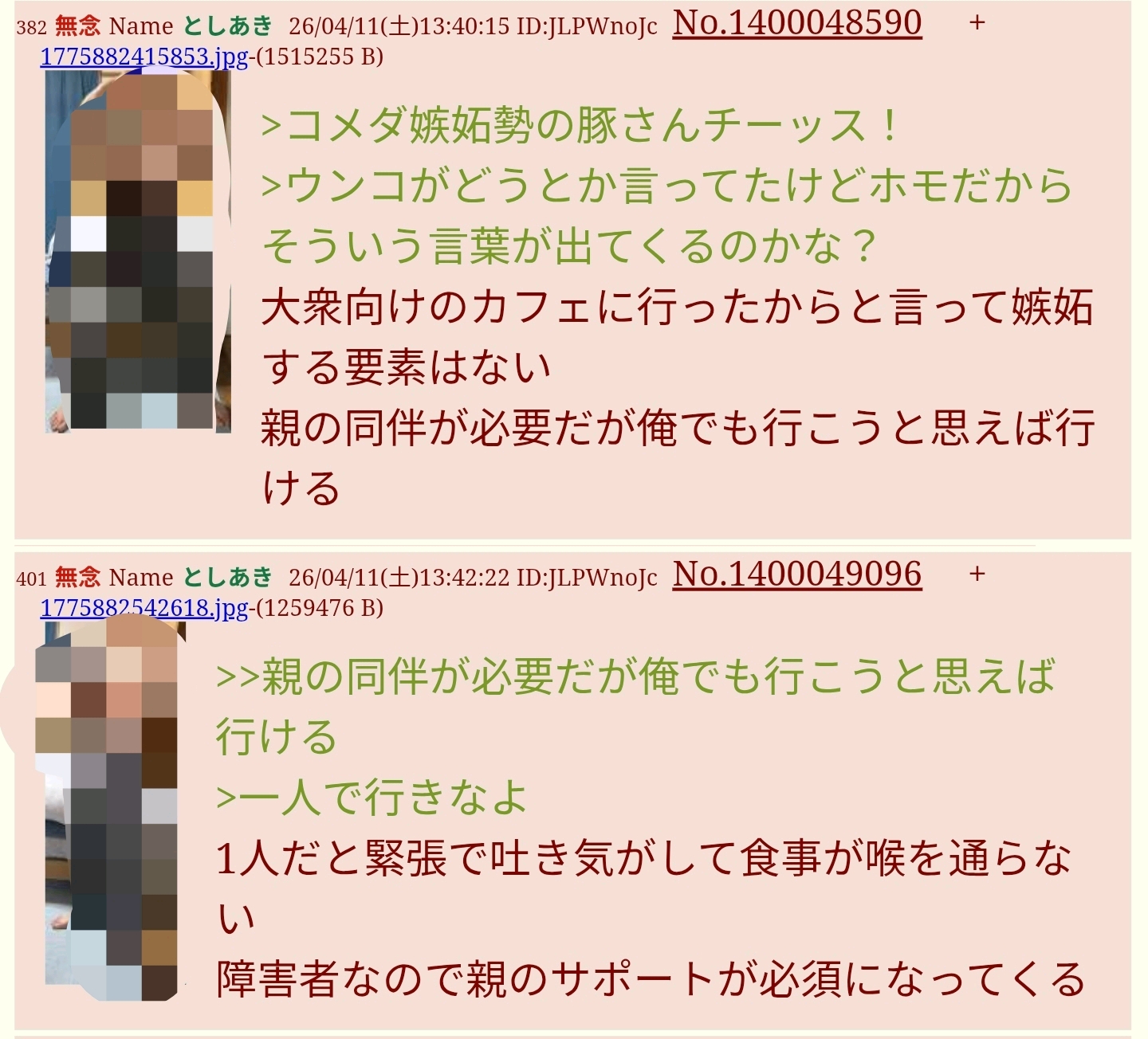 | … | 751無念Nameとしあき26/04/13(月)19:38:58No.1400628125そうだねx2>ちゃんと画像加工できてんじゃんあの豚 |