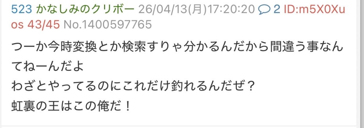 | … | 93無念Nameとしあき26/04/13(月)18:03:13No.1400605366そうだねx5>早速バレバレの書き込みしてて笑う |