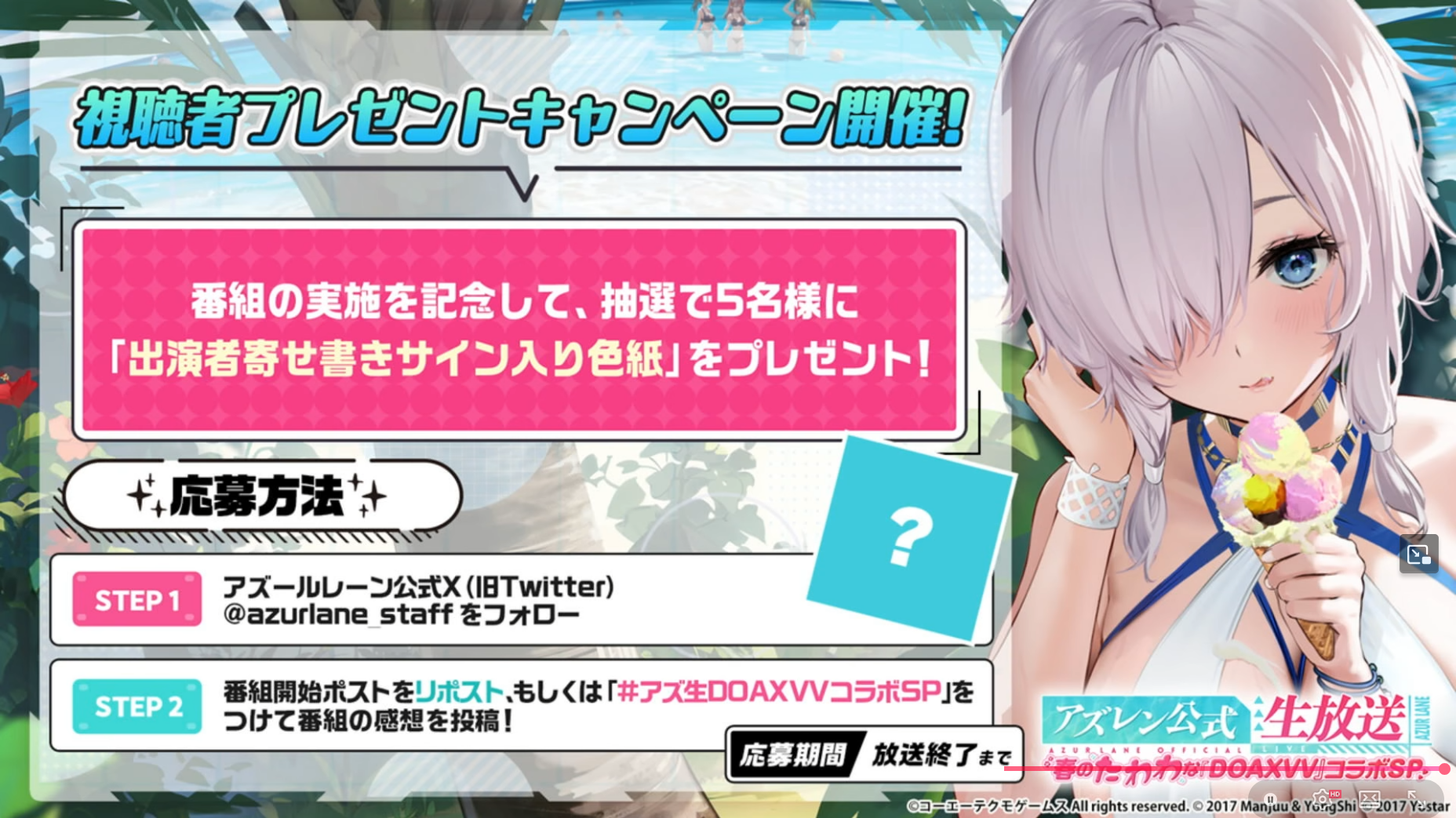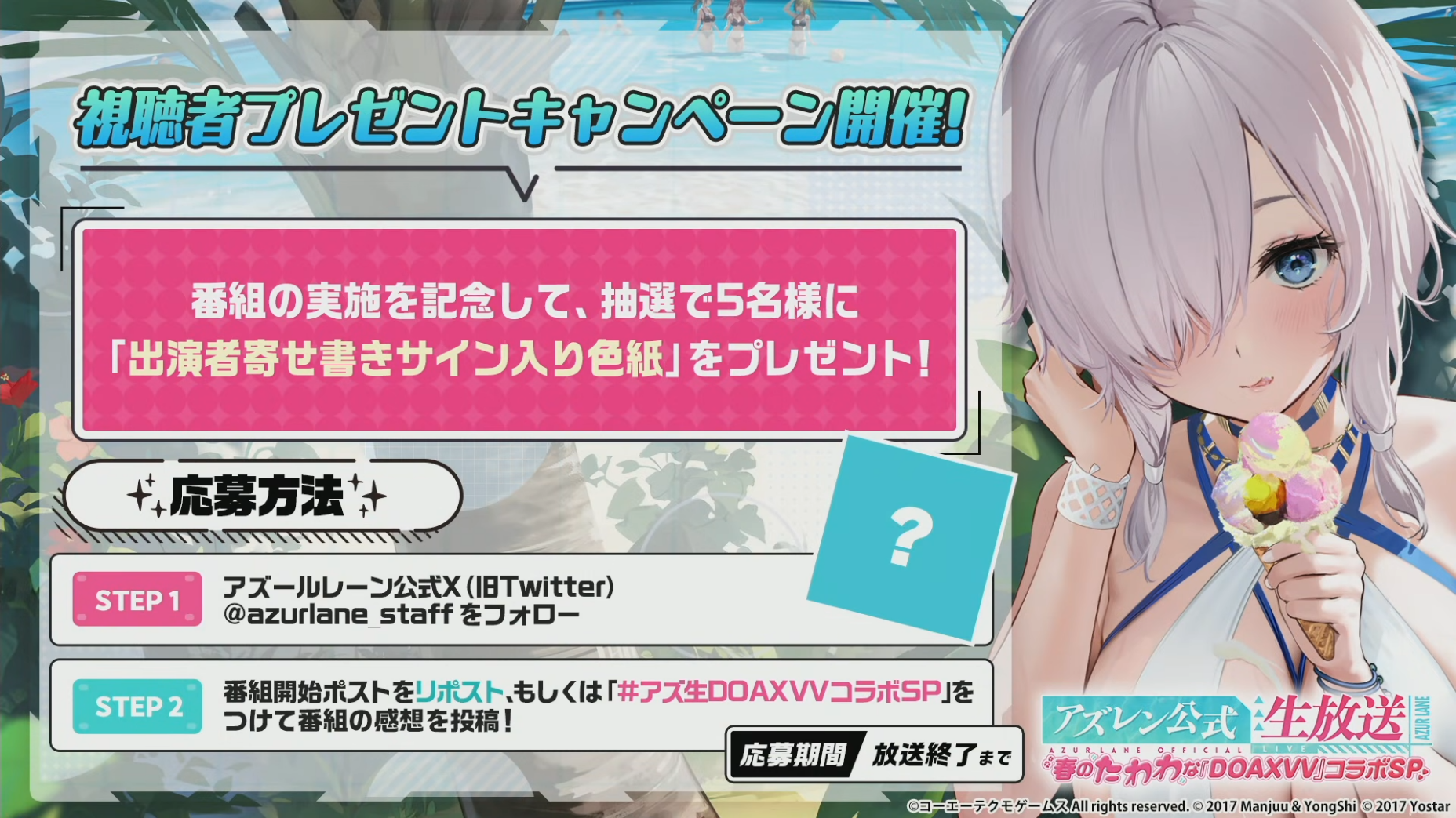 | … | 2無念Nameとしあき26/04/13(月)18:07:55No.1400606193そうだねx1 1776071275349.jpg-(85295 B) 「4月のアズレン公式生放送-春のたわわな『DOAXVV』コラボSP-」配信決定! |