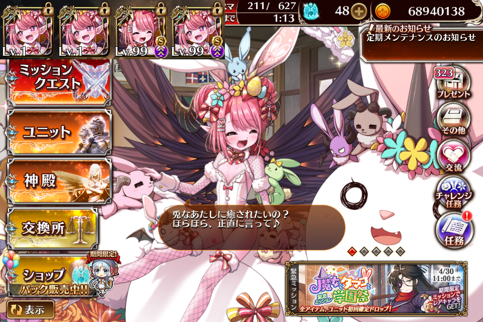 | … | 3無念Nameとしあき26/04/13(月)18:55:05No.1400616058+>運営の石10連分でバニーポンちゃん来た |
