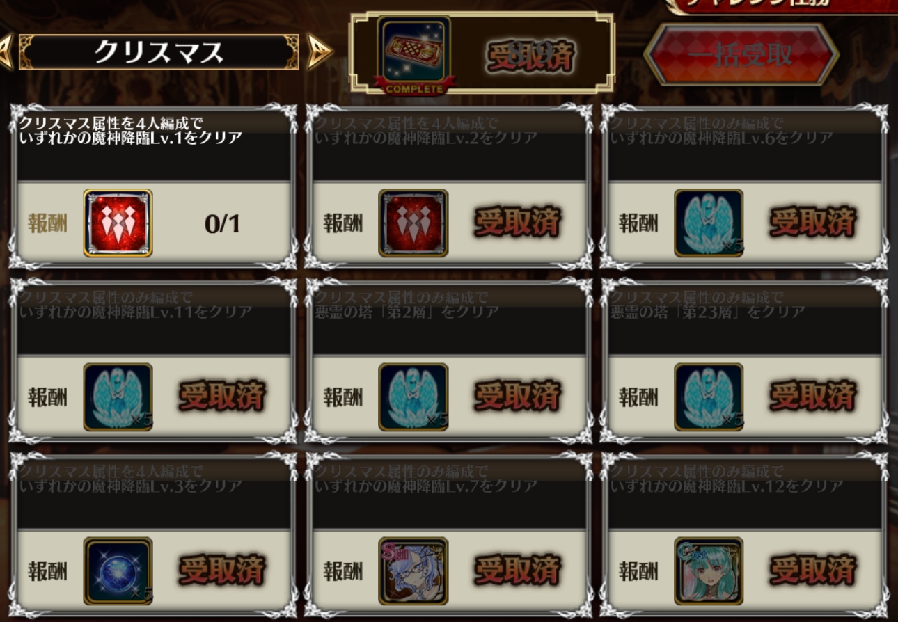 | … | 112無念Nameとしあき26/04/13(月)20:55:45No.1400652124+>おーいマジでクリスマス4人編成で魔神lv1倒しても達成されんのじゃが |