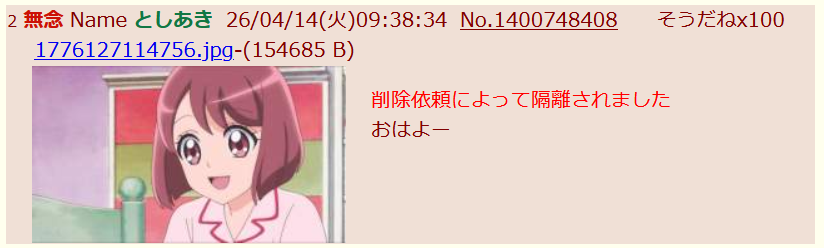 | … | 12無念Nameとしあき26/04/14(火)10:01:42No.1400751014そうだねx8>1776127661290.jpg |