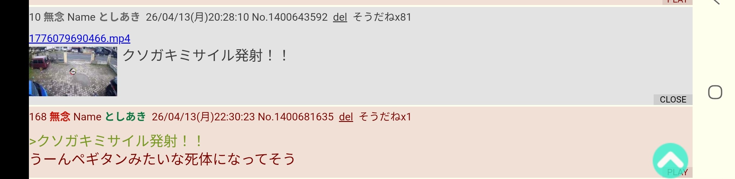 | … | 38無念Nameとしあき26/04/14(火)10:45:00No.1400756474そうだねx2 1776131100498.mp4-(5291154 B) キタ━━━(゚∀゚)━━━!! |