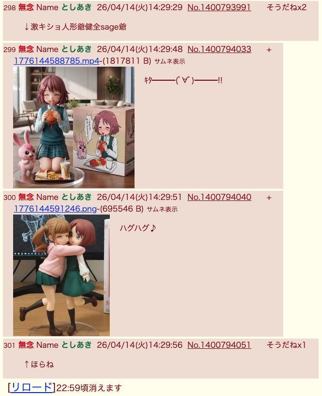 | … | 298無念Nameとしあき26/04/14(火)14:29:29No.1400793991そうだねx6↓激キショ人形爺健全sage爺 |