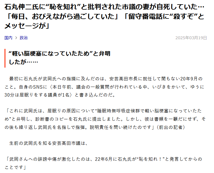 | … | 66無念Nameとしあき26/04/14(火)22:46:59No.1400909595そうだねx8>>居眠りしてたとネットで晒しものにされた議員は急性の脳梗塞の初期症状で気絶してた |