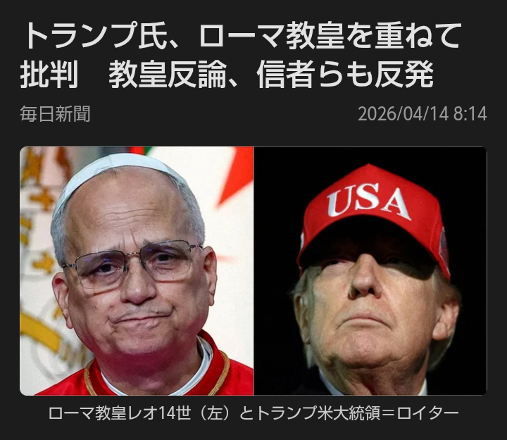 | … | 84無念Nameとしあき26/04/15(水)00:16:35 ID:XBb/ngV2No.1400929033そうだねx2イランが停戦協議の前提条件とか言ってたわりに |