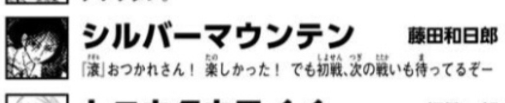| … | 17無念Nameとしあき26/04/15(水)12:20:30No.1400995566そうだねx1 1776223230386.jpg-(181502 B) >「先に行って待ってるぜ藤田」はどうなんだ… |