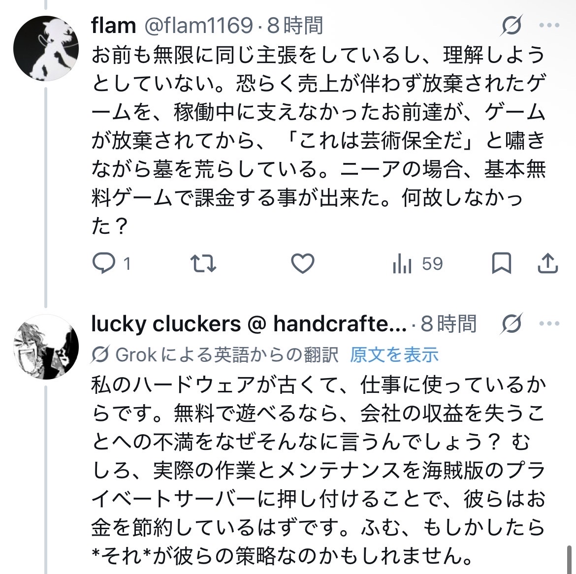 | … | 305無念Nameとしあき26/04/15(水)13:23:40No.1401008979+ニーアのゲームは知らんけどくだんのゲームはサーバ立てるだけで成立すんの? |