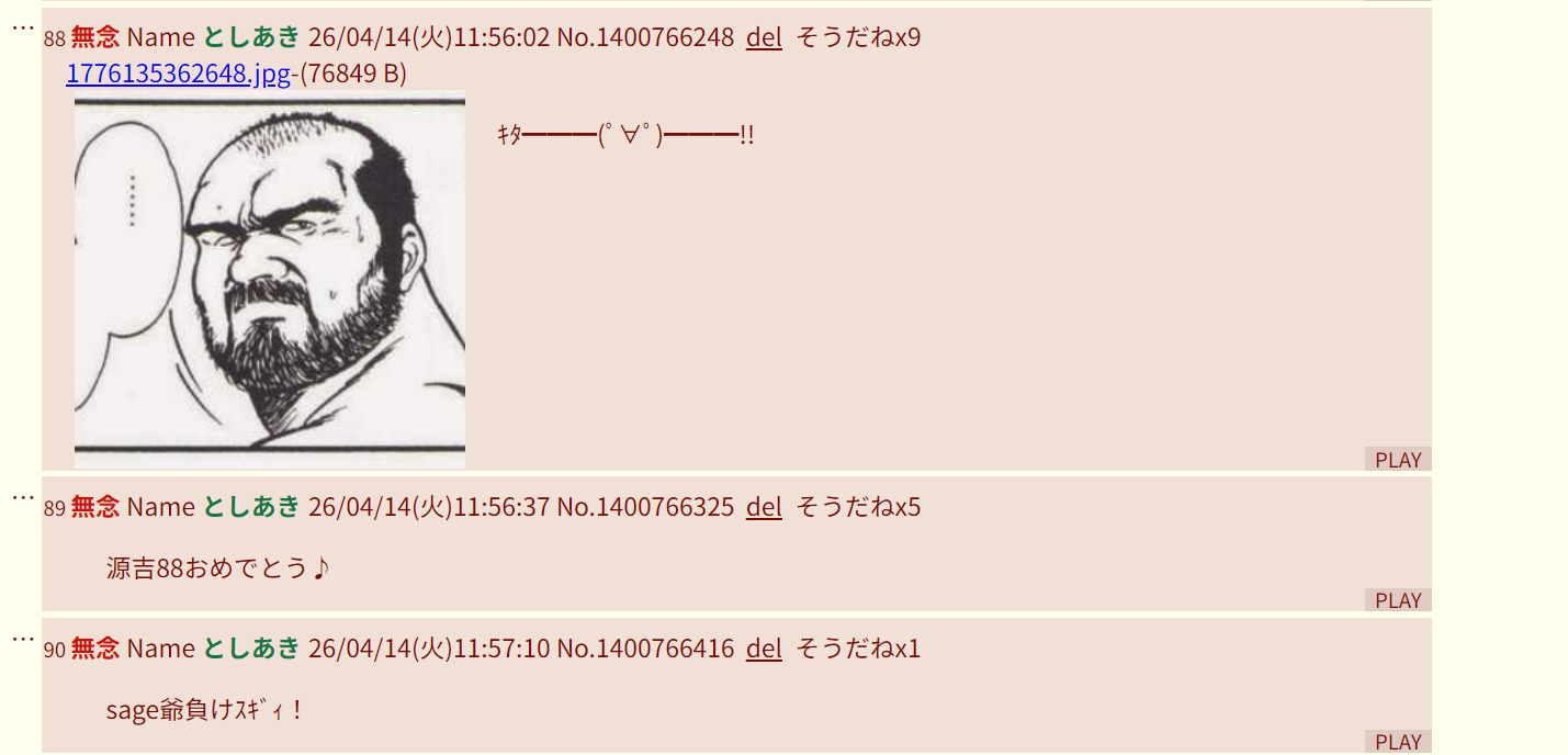 | … | 89無念Nameとしあき26/04/15(水)14:39:54No.1401022021そうだねx4sage爺キリ番狙ってる時いつもドキドキしてそう…w |
