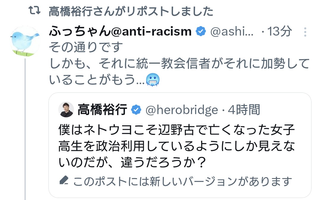 | … | 980無念Nameとしあき26/04/15(水)19:34:32No.1401080724+>結局校長もグルというかこいつも活動家だろ |