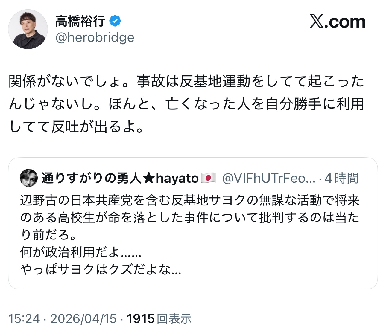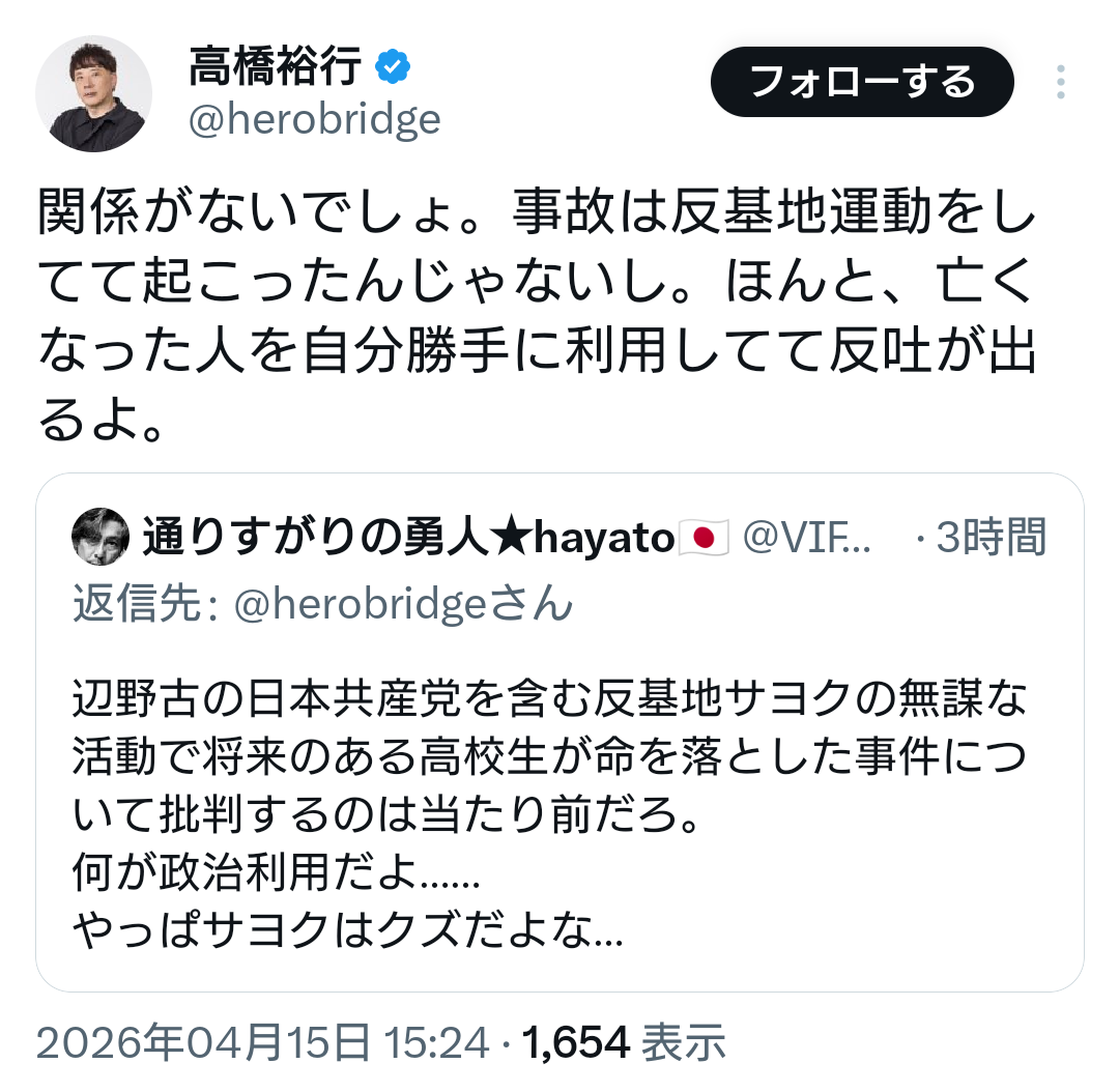| … | 95無念Nameとしあき26/04/15(水)17:16:01No.1401048721+>ご遺族をネトウヨ |