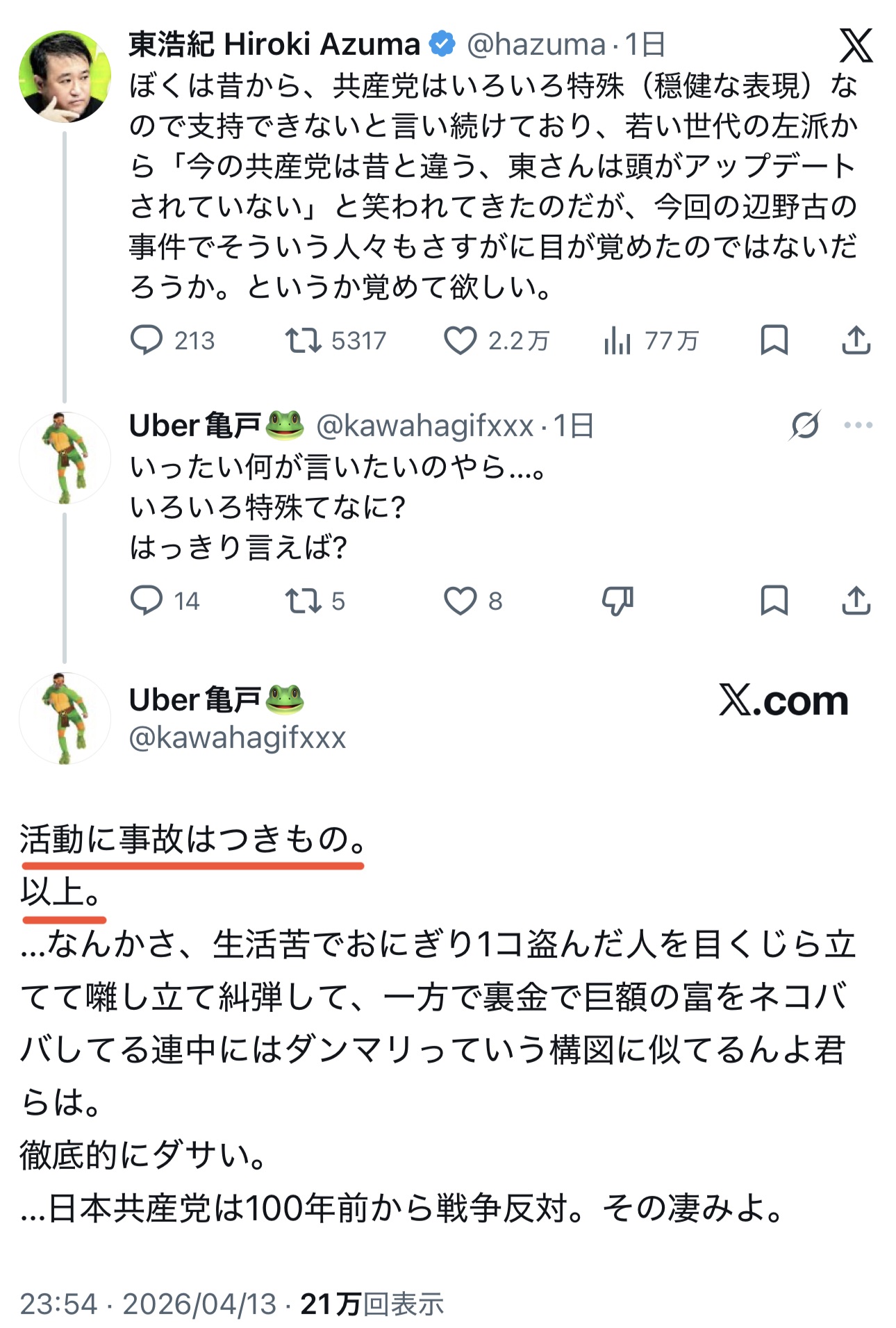 | … | 917無念Nameとしあき26/04/15(水)19:21:23No.1401077029+デニーを支援している共産党を許すな! |