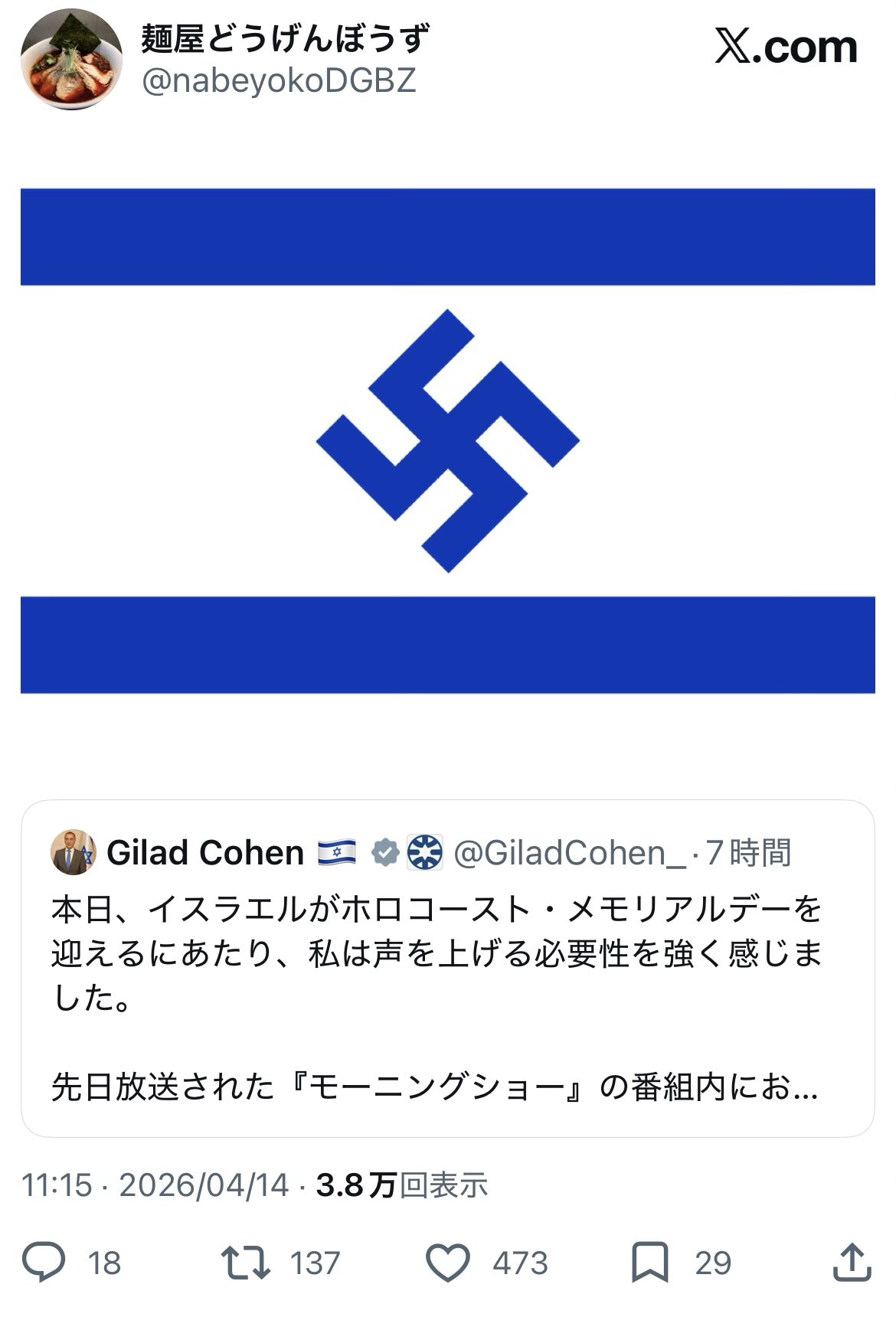 | … | 63無念Nameとしあき26/04/15(水)17:10:28No.1401047616そうだねx22>(ネトウヨ) |