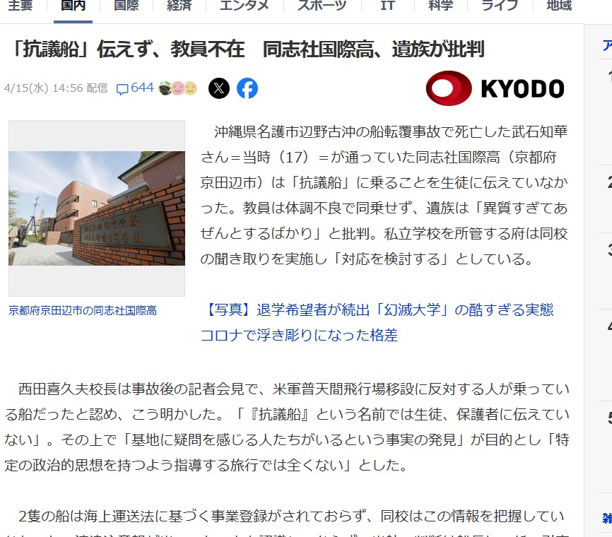 | … | 924無念Nameとしあき26/04/15(水)19:23:08No.1401077524そうだねx2>これ同志社とか沖縄だけの問題ではなくなるぞ |