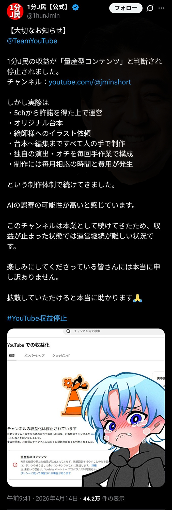 | … | 7無念Nameとしあき26/04/15(水)17:31:29No.1401051655+切り抜き動画も収益停止が相次いでるようですね… |