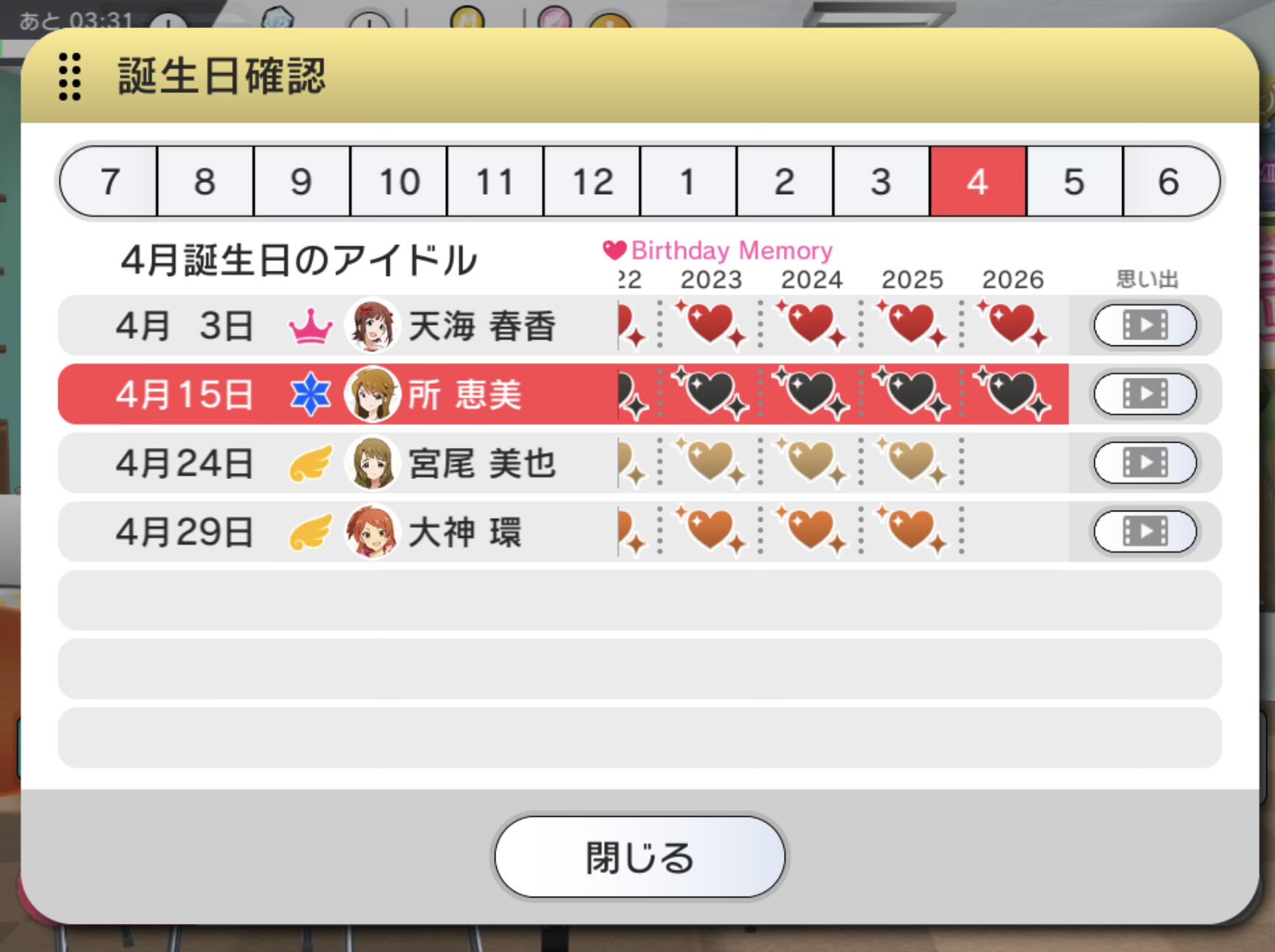 | … | 26無念Nameとしあき26/04/15(水)21:36:11No.1401117614+今年の恵美は祝ってくれるメンバーがトラビの2人だったのは何か珍しいね |