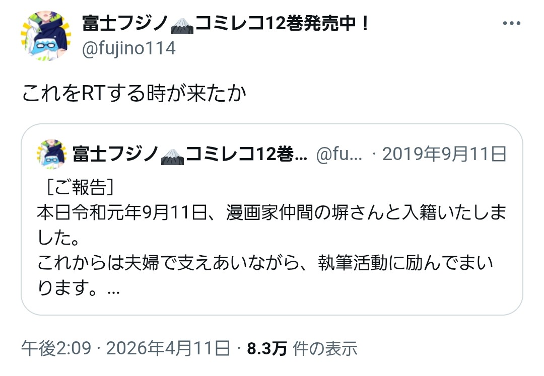 | … | 28無念Nameとしあき26/04/15(水)21:51:16No.1401122720そうだねx1 1776257476994.jpg-(100498 B) >漫画版マギアレコードの作者さんの旦那さんなんだっけ上伊那ぼたん |