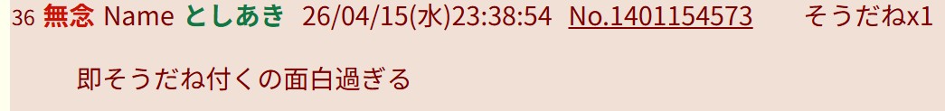 | … | 39無念Nameとしあき26/04/15(水)23:40:27No.1401154913+任天堂「そうだね |