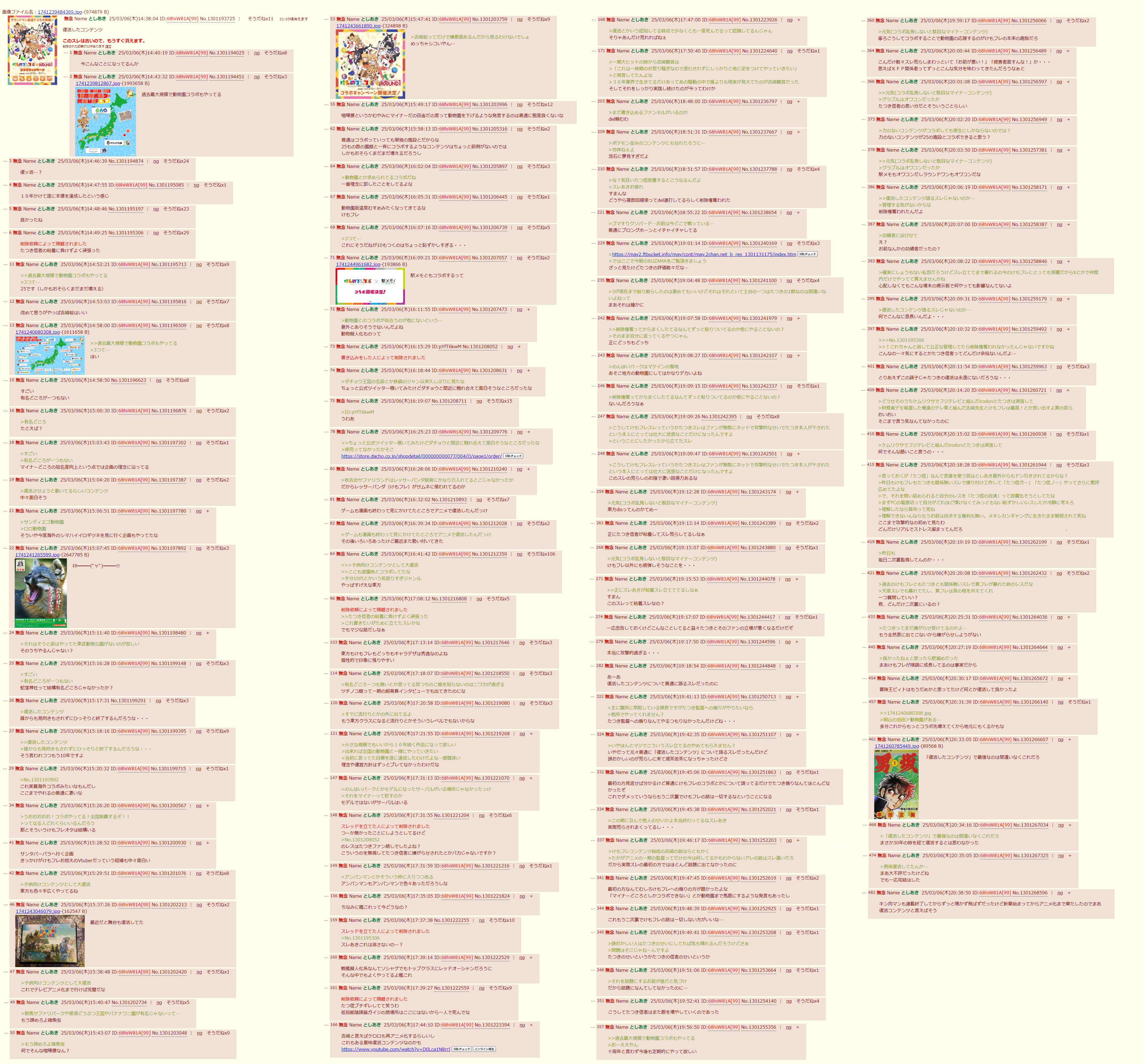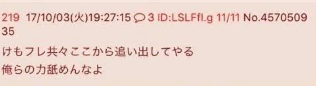 | … | 325無念Nameとしあき26/04/16(木)04:14:59No.1401184534そうだねx1>下痢とかウンコ好きなアホはさつよこ系の馬鹿ってばれてるのから元旦にID出されたのに来るな |