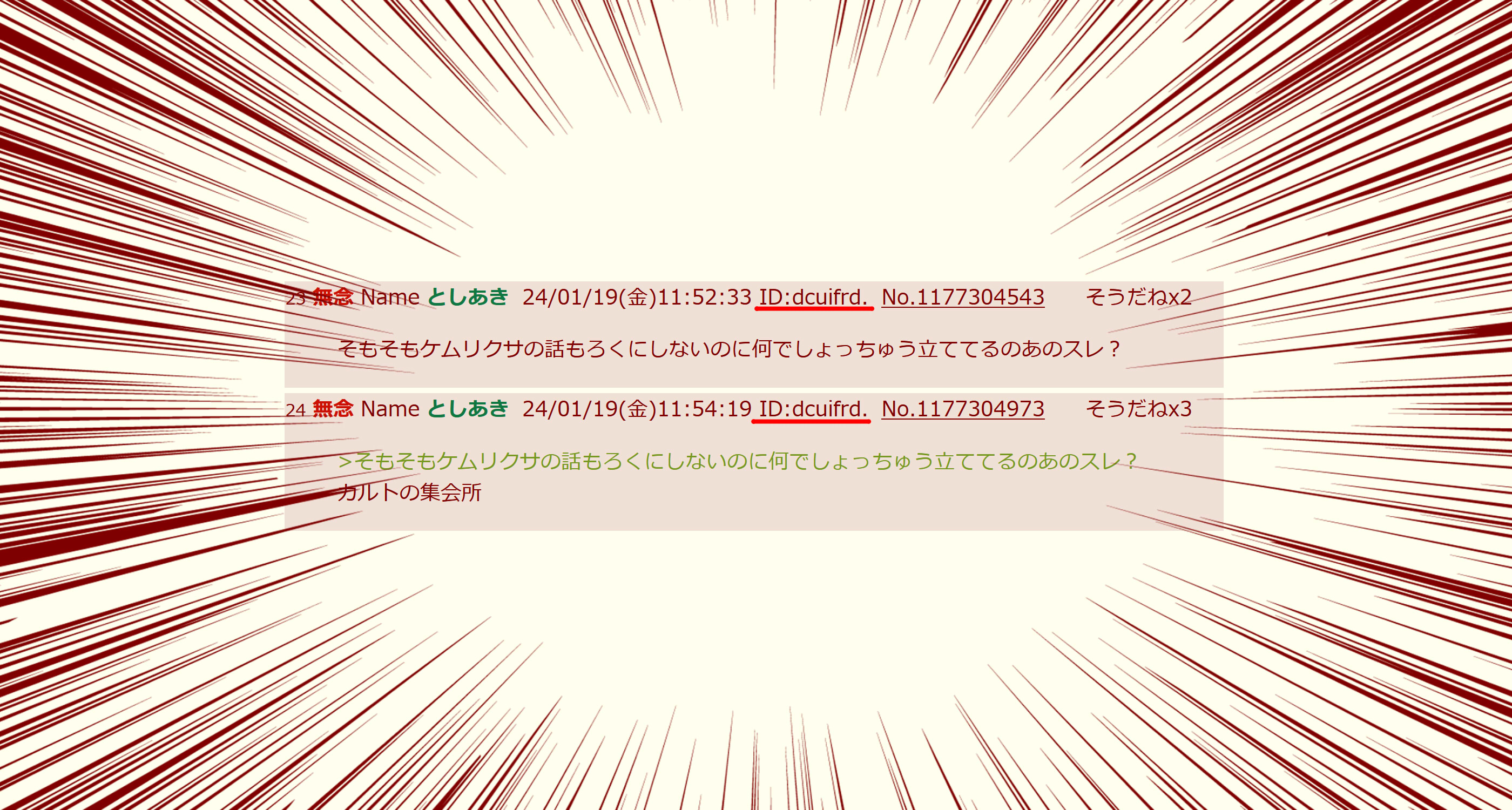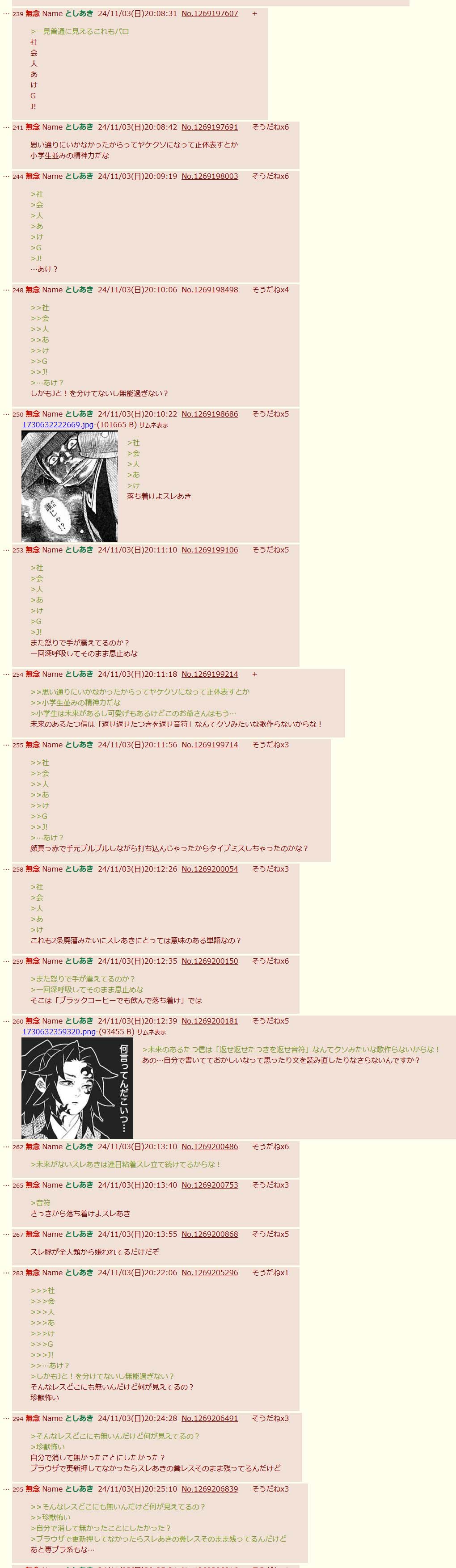 | … | 96無念Nameとしあき26/04/16(木)01:21:01No.1401172112そうだねx9>もうこの糖質には話通じないんで適当にdel入れといてくれ |
