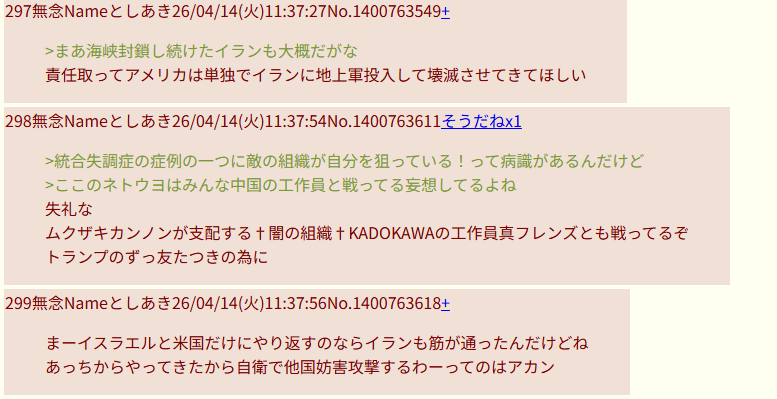 | … | 296無念Nameとしあき26/04/16(木)03:54:30No.1401183574そうだねx3この無言のスクショペタペタがスレ豚のなりすましだったとして |