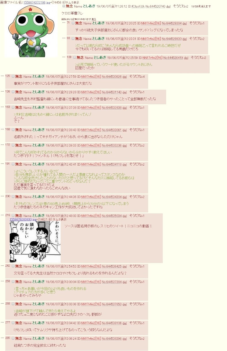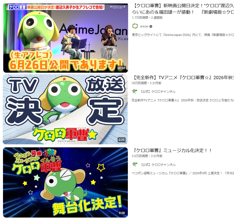 | … | 358無念Nameとしあき26/04/16(木)04:55:47No.1401186209+>ここ最近ケロロ復活させようとしてるからこういうスレ立てて工作してるしお察し |